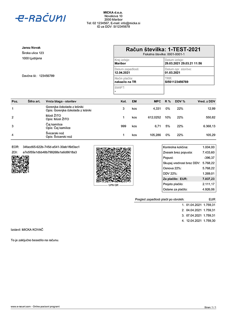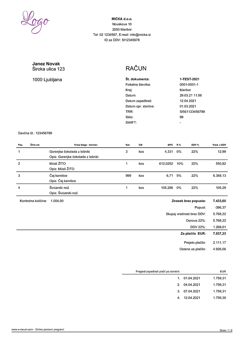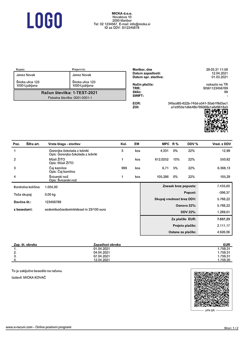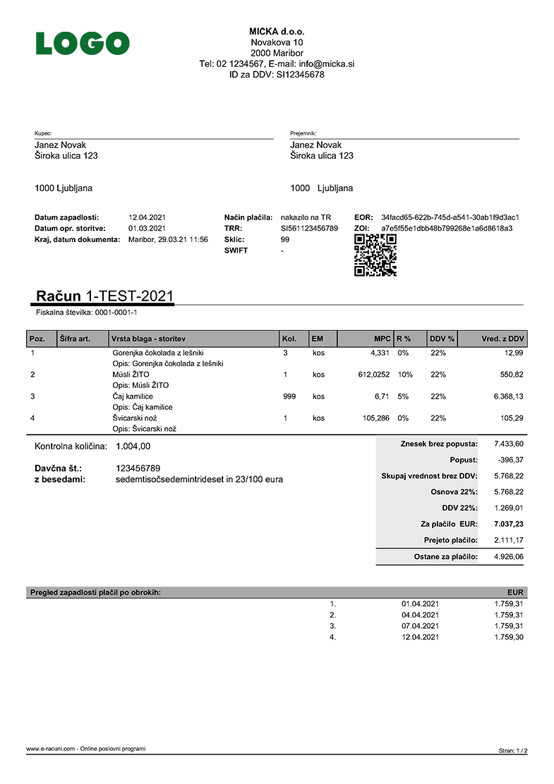 Vaši računi in predračuni bodo profesionalnega videza ter izstavljeni v skladu z zakonodajo.