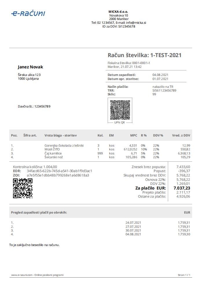 - pošiljanje računov po e-pošti s priponko ali spletno povezavo