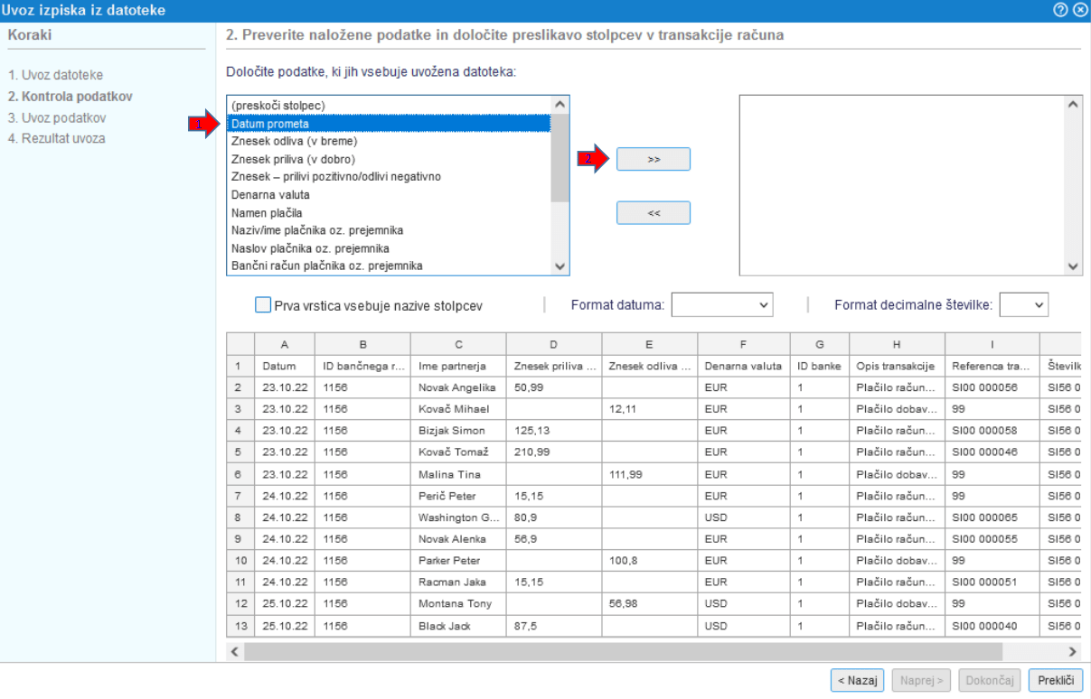 Izpiske vseh ostalih ponudnikov, ki omogočajo izpiske v poljubnem tabelaričnem formatu (Excel, CSV, itd.) pa je mogoče uvoziti s pomočjo čarovnika za uvoz izpiskov.