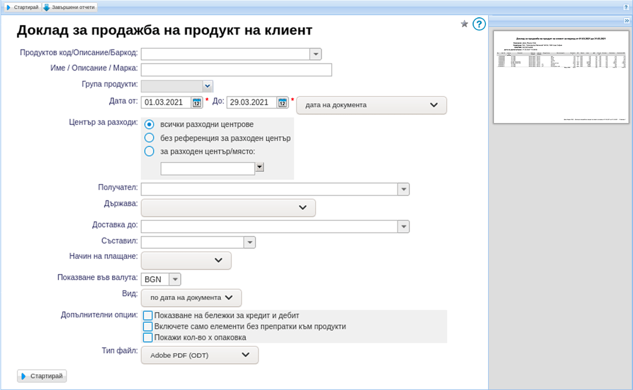 Финансовите отчети и докладите за продажби предлагат пълен преглед и прогноза за напредъка на вашия бизнес. Тенденцията може да бъде проследена чрез определяне на показателите: географски, времеви, по най-продавани продукти или по тип клиенти. Следете печалбите, разходите и данъчното облагане.