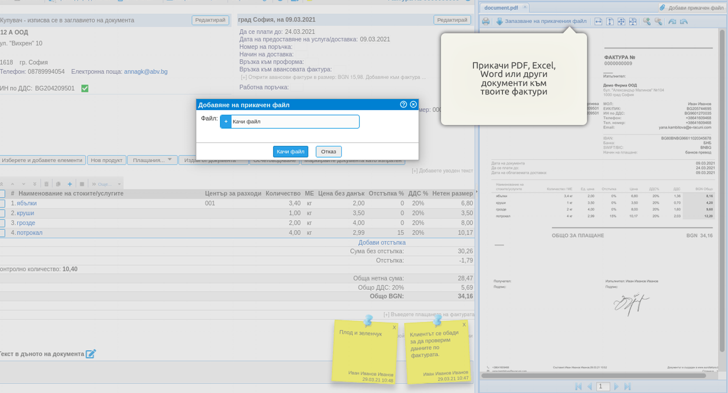 Прикачване на документи към фактурата